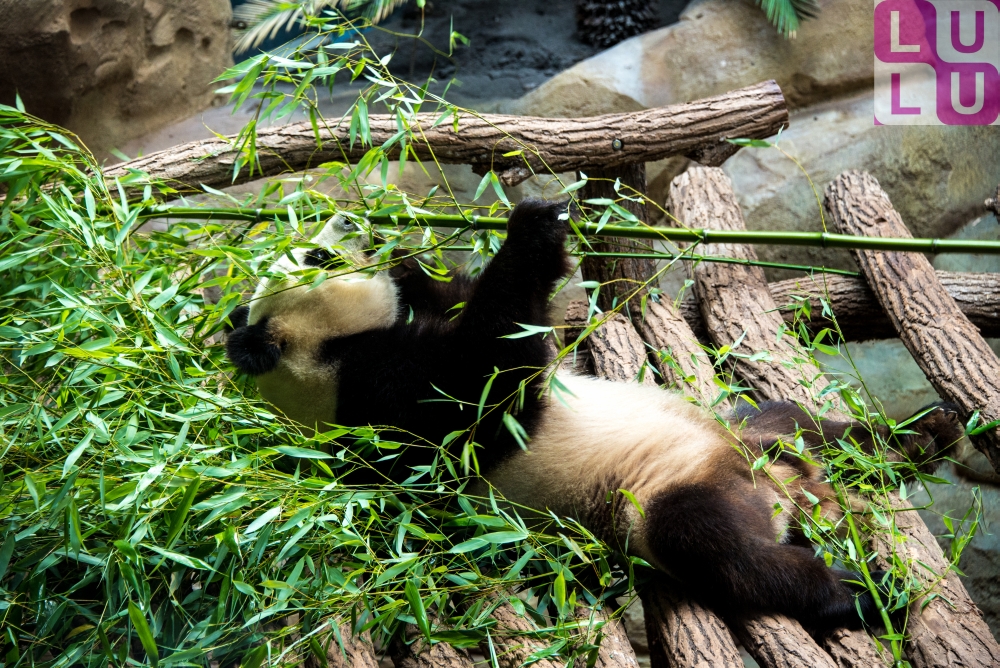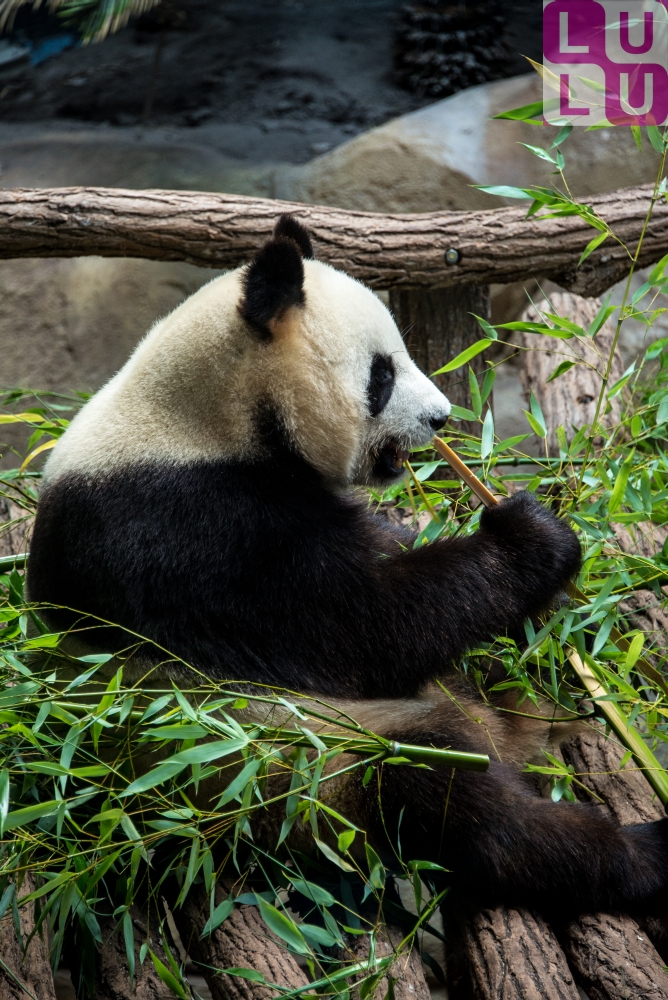 Puis forcément direction les pandas géants dans la partie asiatique du parc, non sans passer par l’enclos du panda roux qui malheureusement souffrait bien de la chaleur et était pendu sur un arbre en plein séance de pionçage ! On n’aura donc pas la chance de le voir. Il en est de même pour les célèbres pandas, Huan Huan et Yuan Zi qui sont dans les enclos intérieur dû à la chaleur. C’est dommage de les avoir vu derrière des vitres malheureusement mais nous avons eu quand même la chance de les voir vu qu’ils étaient actifs en train de manger. Ils disent qu’il faudra attendre 3 ou 4 ans peut-être pour espérer les voir pendant l’été dans les enclos extérieur. Il leur faut en effet s’habituer à leur nouvelle conditions météorologiques de la France car à cette époque là d’où ils viennent il ne fait pas si chaud.