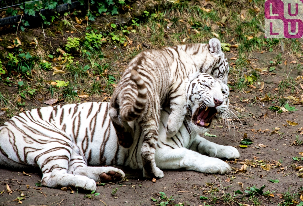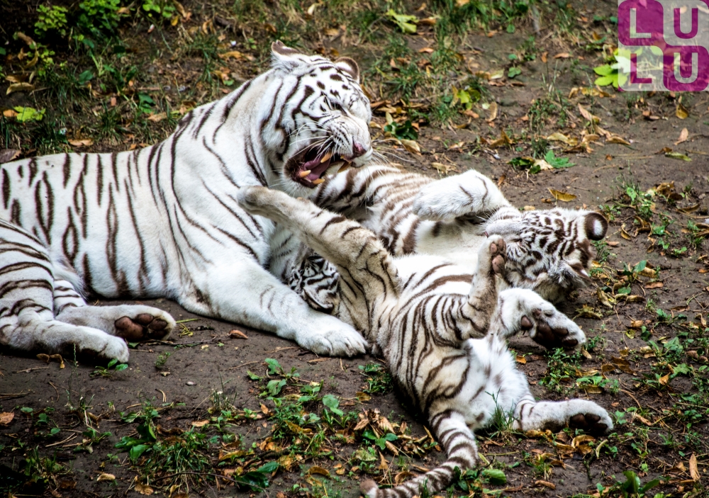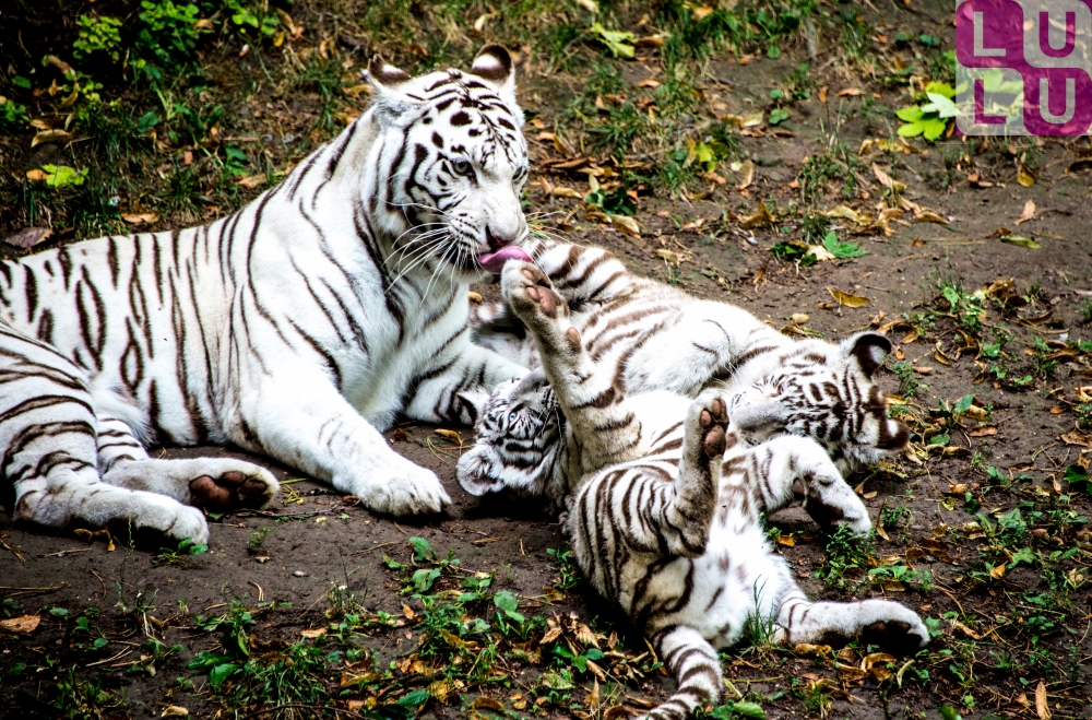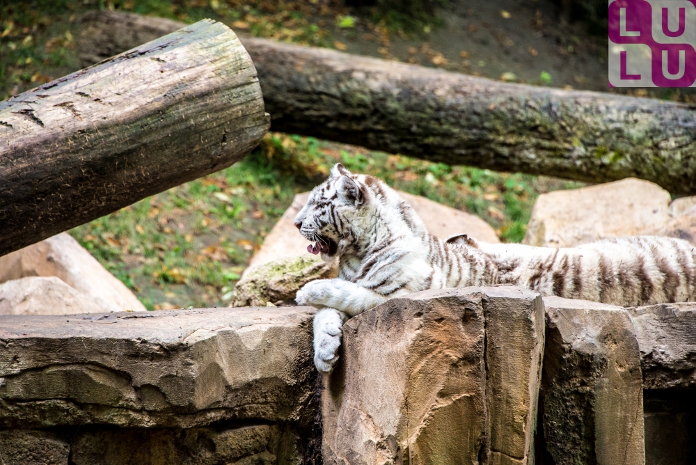 Puis direction les félins ! Cette année est merveilleuse vu le nombre de naissances dont a bénéficié le Zoo de Beauval nous pouvons admirer la femelle tigre blanc avec ses quatre petits ! Les félins généralement dorment l’après-midi mais c’est sans compter les petits qui eux ne pensent qu’à jouer pour notre plus grand bonheur !