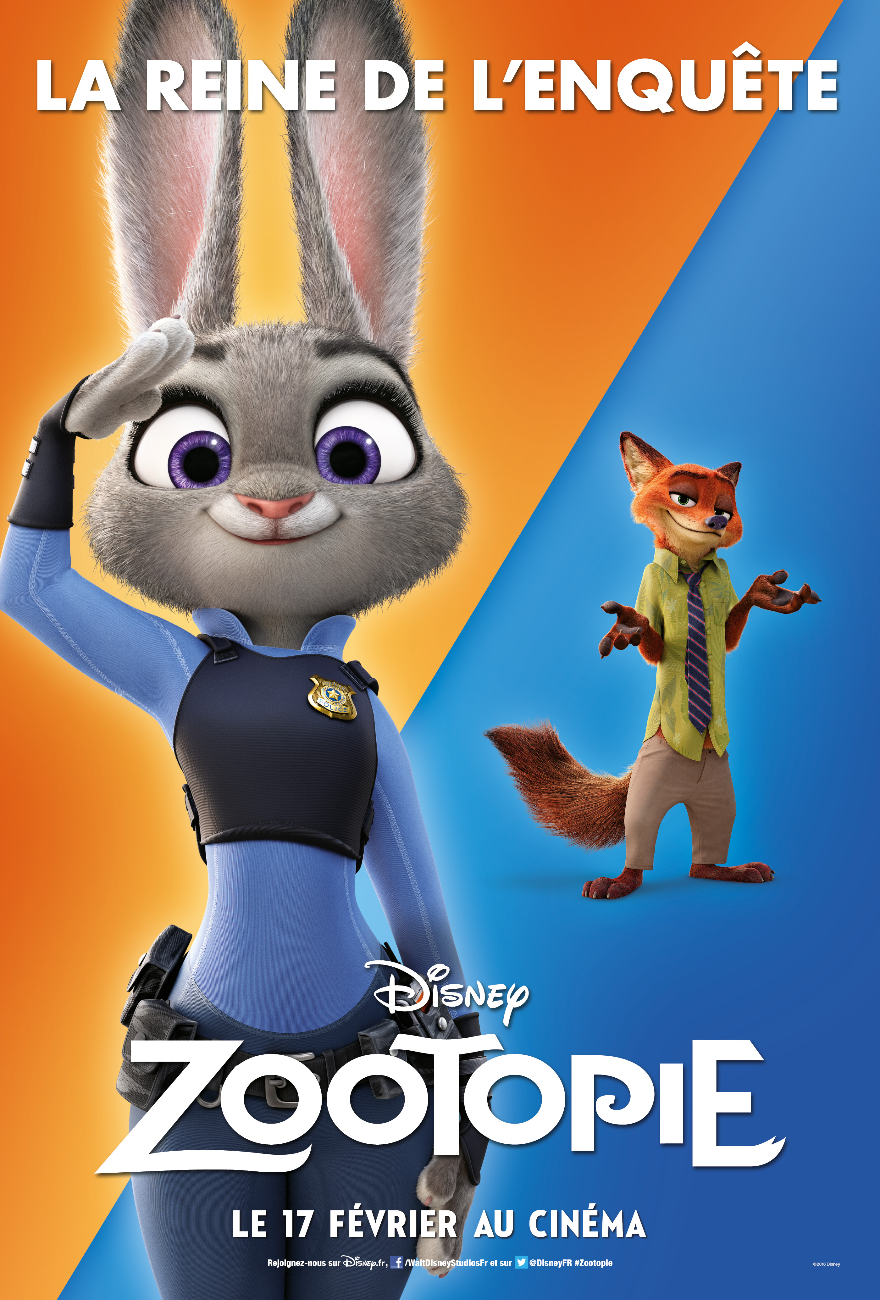 Histoire : Zootopia est une ville qui ne ressemble à aucune autre : seuls les animaux y habitent ! On y trouve des quartiers résidentiels élégants comme le très chic Sahara Square, et d’autres moins hospitaliers comme le glacial Tundratown. Dans cette incroyable métropole, chaque espèce animale cohabite avec les autres. Qu’on soit un immense éléphant ou une minuscule souris, tout le monde a sa place à Zootopia ! Lorsque Judy Hopps fait son entrée dans la police, elle découvre qu’il est bien difficile de s’imposer chez les gros durs en uniforme, surtout quand on est une adorable lapine. Bien décidée à faire ses preuves, Judy s’attaque à une épineuse affaire, même si cela l’oblige à faire équipe avec Nick Wilde, un renard à la langue bien pendue et véritable virtuose de l’arnaque …
